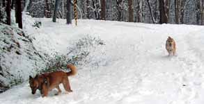 ● 11/1 日曜 9:00 気温 2℃雪昨夜から降り始めた雪(下左)、今朝の積雪は15pほど。 寝雪にはまだ早いので一旦は融けるとは思うけれど・・・ しかし犬は大喜び。