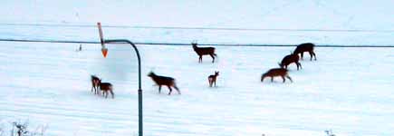 自然の食料がなくなってきたようで、昨年設置した餌台にまた野鳥が遣ってくるようになりました。 野生のエゾシカが前の畑に現れた、中央に子ジカが1頭いる様子。 1頭だけのシカならすぐ近くで見ることもあるし2、3頭のシカもたまに見かけるけど、8頭の群を見るのは初めて。