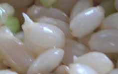 ● 11/28 土曜 7:40 気温 -3℃ 晴れ全体的に発芽してきたので早速炊いてみることに。 ザルに開けて水を切ったところの写真。 三日間水を吸って相当フヤケテ軟らかくなっているので軽くすすいで炊飯器の中へ。