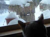 ● 1/6 (水) 11:45 1℃ 雪昨日は寒かったと思えば今日は温かい、午前中汗をかきながらの除雪。今朝は7:00頃でも0℃位と温かかったので昨日とは極端。 猫はと言うと、野鳥の餌台に鳥が来るのを窓越しに眺めて待構えています。しかし鳥が来たからと言ってどうすることもできないのだが・・・精々指をくわえる代わりにシッポ振って眺めるくらいしか・・・ ◇本日は大雪!16:00で-0.5℃と温かいのですが、午前に除雪終えてから25cmの積雪、全く止む気配なし。