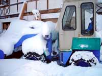 タイヤショベル、小型のブルドーザーみたいなもので除雪します。必需品です。