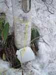 ●13(火) 10:35 3℃ 曇り10日に植えた種から早くも芽が出てきました。 右は白樺の樹液を少し煮詰めたもの。きれいな褐色色になっていますが、甘くておいしいです。 樹液の採取は容器を取り付けたまま置いてあるので、毎日少しづつ採れる用になっています。